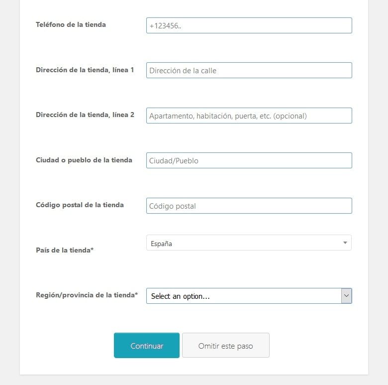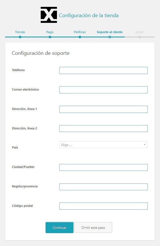 En la siguiente ventana el asistente nos solicitará los datos para dar soporte a los clientes. Por norma general estos datos serán los mismos que has puesto para la tienda, pero si tienes una dirección distinta para dar soporte debes de ponerla aquí, en caso contrario pon los mismos que los que has puesto para la tienda.