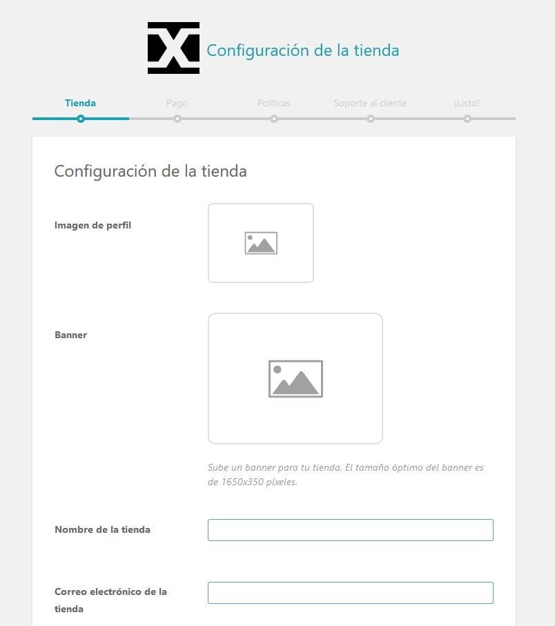 1- En la siguiente ventana lo primero que que nos pide el asistente es que subamos una imagen de perfil de nuestra tienda.