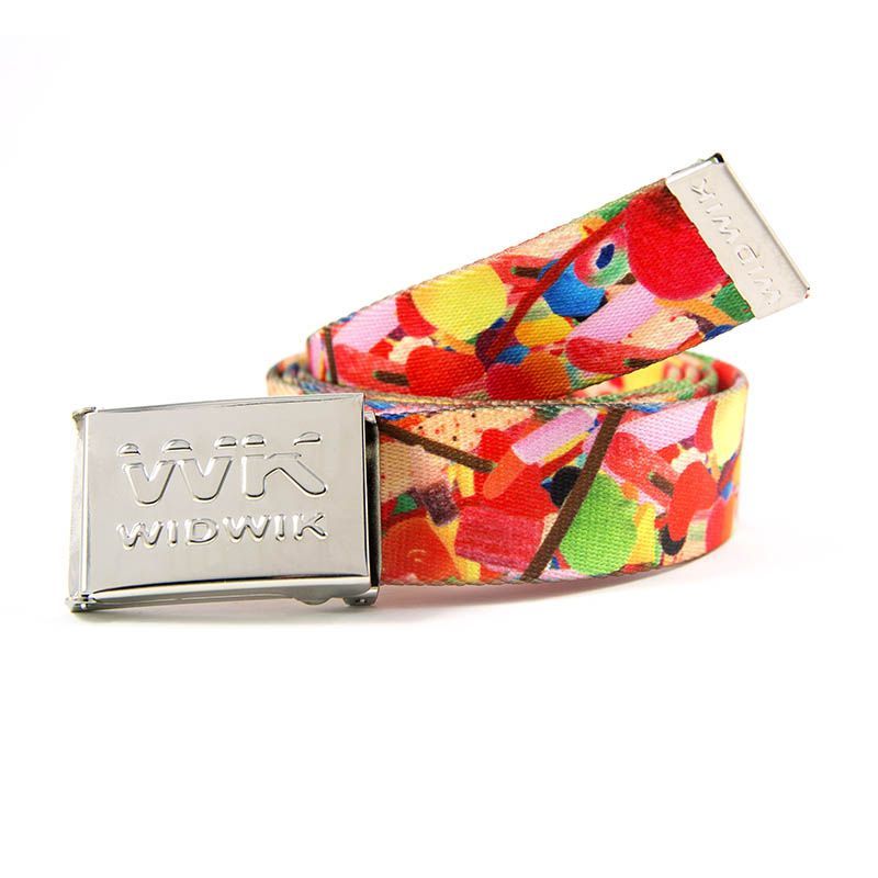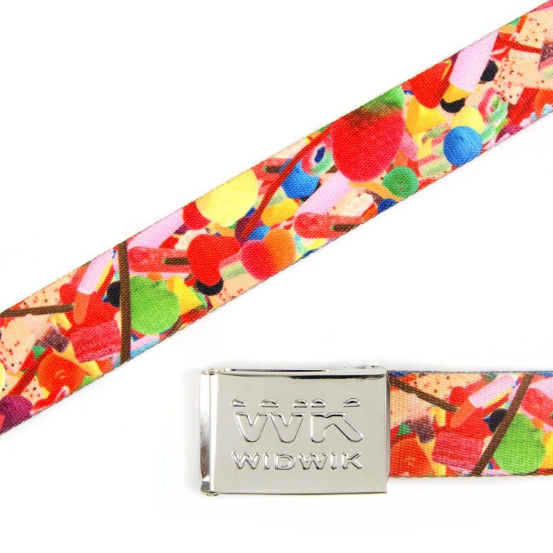 Disfruta con este cinturón de variado de golosinas que está repleto de tus chuches preferidas: nubes, colas, regalices, corazones, ladrillos, tronquitos… “bajos en azúcar y sin gluten”. De los preferidos de los más pequeños y mayores de la casa. Con un estampado alegre y divertido pondrás tu toque personal y colorido a tus pantalones y faldas.