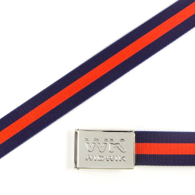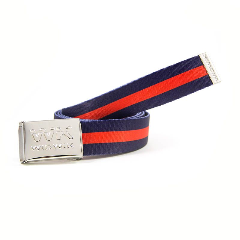 Cinto de los más clásicos de la marca Widwik. Cinto para un estilo más formal pero sin olvidar su colorido vivo y brillante, diferenciándose de cualquier otro cinto soso y oscuro que llena nuestras vidas. Con el cinto WIDWIK, con fondo azul marino y raya roja, pondrás un toque de glamour a tu look más serio y nunca desentonarás.