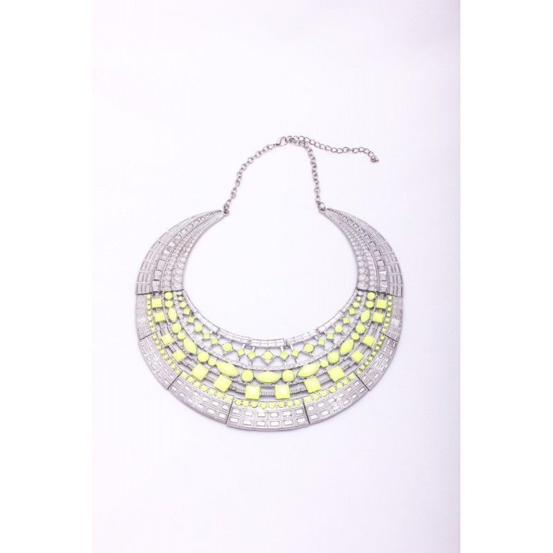 Gargantilla de bisutería con pedrería en color amarillo fluorescente. Cierre de mosquetón. Diámetro aproximado 105 milímetros.